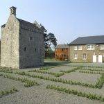 Ionad fáilte, láthair taispeántais agus caifé, taobh le túrtheach meánaoiseach.